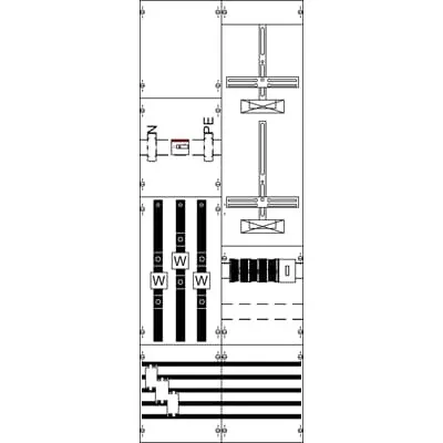 2CPX033041R9999 ABB: Measurement and metering transformer board, fully assembled module, with Metering cross, for the internal use, degree of protection IP2XC, applicable standards: EN 61439-1, EN 61439-2, Rated operational voltage 415V AC 50/60 Hz, rated current 100 A, Rated current of the assembly of switchgear and controlgear InA 100 A, in RAL 7035, dimensions in mm (H x W x D): 1350 x 500 x 160, Earthing system TN-S, 5-pole, Number of SG spaces 1, (300 mm), Number of transformer meter spaces 1, TAE terminal box 1, Secundary wiringset up to metering device, busbar system Cu busbars 12 x 5 mm 5-pole, parting point before the current transformer Fuse base elements 1x3xNH00/125 A, current transformer range CT mounting pad with CT rail 170 x 30 x 5 mm, parting point after the current transformer Switch 125 A / 3-pole (10-70qmm), primary wiring 35 qmm, N+PE 2 Connections N+PE 95qmm, Note: Busbar terminals should be ordered seperately, Grid unit 9 GU, Overall height 5, panel width 2, Space units 216, covers out of Plastic, Quick sealable connection, RAL 7035
