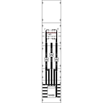 2CPX033407R9999 ABB: CT meter panel, fully assembled module, for the internal use, degree of protection IP2XC, applicable standards: DIN VDE 0603-2-2, EN 61439-1, EN 61439-2, Rated operational voltage 415V AC 50/60 Hz, rated current 128 A, Rated current of the assembly of switchgear and controlgear InA 160 A, in RAL 7035, dimensions in mm (H x W x D): 1350 x 250 x 160, Earthing system TN-S, 5-pole, voltage path Range 150 mm for upgrading to voltage path protection fuses, busbar system Cu busbars 12 x 5 mm 5-pole, parting point before the current transformer Fuse switch disconnector NH00/160A, current transformer range CT mounting pad with CT rail 170 x 30 x 5 mm, parting point after the current transformer Switch 160 A / 3-pole (10-70qmm), primary wiring L1-L3 Cu-Busbar 30 x 5 und 20 x 5, PE+N Cu-Busbar 20 x 5 mm, Connection N+PE (M8), Note: Incomer connection to other board/module via busbar, connection set for voltage path and current may be required, Grid unit 9 GU, Overall height 5, panel width 1, Space units 108, covers out of Plastic, Quick sealable connection, RAL 7035