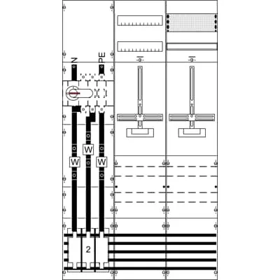 2CPX034036R9999 ABB: Measurement and metering transformer board, fully assembled module, with Metering cross, for the internal use, degree of protection IP2XC, applicable standards: DIN VDE 0603-2-2, EN 61439-1, EN 61439-2, Rated operational voltage 415V AC 50/60 Hz, rated current 250 A, Rated current of the assembly of switchgear and controlgear InA 287 A, in RAL 7035, dimensions in mm (H x W x D): 1350 x 750 x 160, Earthing system TN-S, 5-pole, Number of SG spaces 1, Number of transformer meter spaces 1, busbar system Cu busbars 2 x 12 x 5 mm 5-pole, parting point before the current transformer Fuse base element NH2/400 A, current transformer range CT mounting pad with CT rail 170 x 30 x 5 mm, parting point after the current transformer Switch 400 A / 3-pole (M10), Connection N+PE (M8), Grid unit 9 GU, Overall height 5, panel width 3, Space units 324, covers out of Plastic, Quick sealable connection, RAL 7035