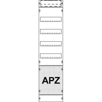 2CPX037192R9999 ABB: Interior fitting system, suitable for series: U and A and TG...SZ, empty board, dimensions in mm (H x W x D): 1050 x 250 x 160, Grid unit 7 GU, Overall height 3, panel width 1, Space units 84, Row distance in mm: 125, covers out of Plastic, 90 degree press and turn closure, RAL 7035, with N/PE