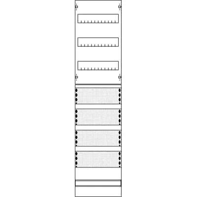2CPX037466R9999 ABB: combination of media and distribution fields, with 3 DIN rails for installation units and perforated mounting plates without cover, overall height 3, 7 grid units, for clear and central layout of communication units, fast boreless mounting of units, enough space for future communication units