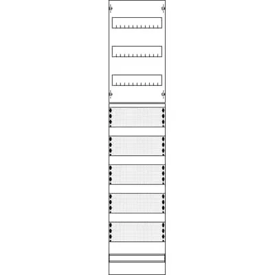 2CPX037468R9999 ABB: combination of media and distribution fields, with 3 DIN rails for installation units and perforated mounting plates without cover, overall height 4, 8 grid units, for clear and central layout of communication units, fast boreless mounting of units, enough space for future communication units