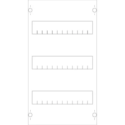 2CPX037580R9999 ABB: Interior fitting system, Distribution panels, mounted on EDF-Profile, for DIN rail mounting devices, Grid unit 3 GU = 450 mm, panel width 1 = 250 mm, 36 Space units, Row distance in mm: 125, assembled with DIN rail 35 x 15 mm with perforation for wire holders, covers out of Plastic, 90 degree press and turn closure, RAL 7035, Design of the cover: with cut-out, usuable as of the cabinet depth of 120 mm, distribution panels or combinations must have the same grid units as the cabinets, in which they are installed. For floor standing and switch gear cabinets, two panels or combinations must be installed next to each other. The EDF profile rails are included in the scope of delivery.