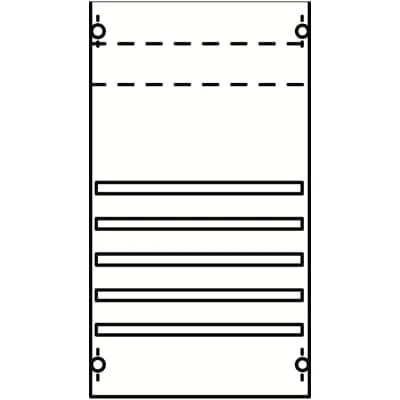 2CPX037590R9999 ABB: Interior fitting system, Distribution panels, mounted on EDF-Profile, for Busbar und terminals, Grid unit 3 GU = 450 mm, panel width 1 = 250 mm, 36 Space units, with busbar system 5-pole, Busbar alignment: horizontal, with busbar holders ZB5, Busbar center distance: 40 mm, with 5 Cu busbars, rated current maximum 360 A, covers out of Plastic, 90 degree press and turn closure, RAL 7035, Design of the cover: Closed, usuable as of the cabinet depth of 120 mm, distribution panels or combinations must have the same grid units as the cabinets, in which they are installed. For floor standing and switch gear cabinets, two panels or combinations must be installed next to each other. The EDF profile rails are included in the scope of delivery.
