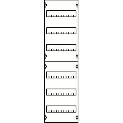 2CPX037634R9999 ABB: Interior fitting system, Distribution panels, mounted on EDF-Profile, for DIN rail mounting devices, Grid unit 6 GU = 900 mm, panel width 1 = 250 mm, 72 Space units, Row distance in mm: 125, assembled with DIN rail 35 x 15 mm with perforation for wire holders, covers out of Plastic, 90 degree press and turn closure, RAL 7035, Design of the cover: with cut-out, usuable as of the cabinet depth of 120 mm, distribution panels or combinations must have the same grid units as the cabinets, in which they are installed. For floor standing and switch gear cabinets, two panels or combinations must be installed next to each other. The EDF profile rails are included in the scope of delivery.