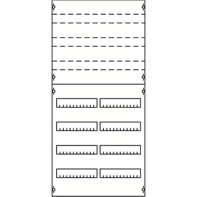 2CPX037642R9999 ABB: Interior fitting system, Distribution panels, mounted on EDF-Profile, for DIN rail devices and DIN rail terminals, Grid unit 7 GU = 1050 mm, panel width 2 = 500 mm, 168 Space units, Row distance in mm: 125, assembled with DIN rail 35 x 15 mm with perforation for wire holders, covers out of Plastic, 90 degree press and turn closure, RAL 7035, Design of the cover: with cut-out, usuable as of the cabinet depth of 120 mm, distribution panels or combinations must have the same grid units as the cabinets, in which they are installed. For floor standing and switch gear cabinets, two panels or combinations must be installed next to each other. The EDF profile rails are included in the scope of delivery.