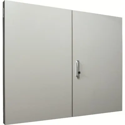 2CPX041057R9999 ABB: Fire protection door, series VF, for the internal use, with closed doorframe and door, degree of protection IP54, fire resistance 30 min tested according to , Reduce fire load 30 min in line with , Maintain functionality 30 min in line with , Surface-coated, in RAL 7035, enclosure out of non flammable material, double door, door out of non flammable material, with Swivel handle with half cylinder, door opening angle 180 degree, door hinge right and left, dimensions in mm (H x W x D): 1195 x 1295 x 51, Shutter frame dimensions in mm (H x W x D): 1195 x 1295 x 22, Grid unit 6 GU, Overall height 2, panel width 4, Space units 288