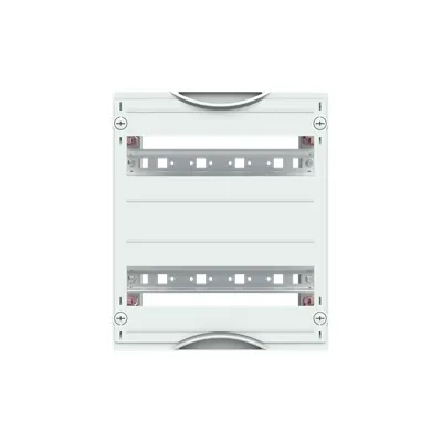 2CPX041204R9999 ABB: Interior fitting module, CombiLine, mounted in cabinet, for DIN rail mounting devices, Grid unit 2 GU = 300 mm, panel width 1 = 250 mm, 24 Space units, Row distance in mm: 150, assembled with DIN rail 35 x 15 mm with perforation for wire holders, covers out of Plastic, 90 degree press and turn closure, RAL 7035, Design of the cover: with cut-out, usuable as of the cabinet depth of 120 mm