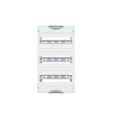 2CPX041209R9999 ABB: Interior fitting module, CombiLine, mounted in cabinet, for DIN rail mounting devices, Grid unit 3 GU = 450 mm, panel width 1 = 250 mm, 36 Space units, Row distance in mm: 125, assembled with DIN rail 35 x 15 mm with perforation for wire holders, covers out of Plastic, 90 degree press and turn closure, RAL 7035, Design of the cover: with cut-out, usuable as of the cabinet depth of 120 mm