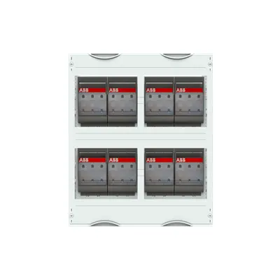 2CPX041297R9999 ABB: Interior fitting module, CombiLine, mounted in cabinet, for NH00-fuse switch disconnector, Grid unit 4 GU = 600 mm, panel width 2 = 500 mm, 96 Space units, equipped with 8 NH-fuse disconnector NH00, Equipment manufacturer: ABB, XLP, with busbar system 3-pole, rated current maximum 320 A, covers out of Plastic, 90 degree press and turn closure, RAL 7035, Design of the cover: with cut-out, usuable as of the cabinet depth of 200 mm