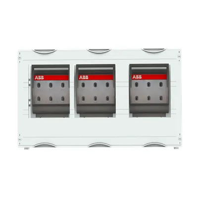 2CPX041307R9999 ABB: Interior fitting module, CombiLine, mounted in cabinet, for NH1-fuse switch disconnector, Grid unit 3 GU = 450 mm, panel width 3 = 750 mm, 108 Space units, equipped with 3 NH-fuse disconnector NH1, Equipment manufacturer: ABB, XLP, with busbar system 3-pole, rated current maximum 440 A, covers out of Plastic, 90 degree press and turn closure, RAL 7035, Design of the cover: with cut-out, usuable as of the cabinet depth of 225 mm