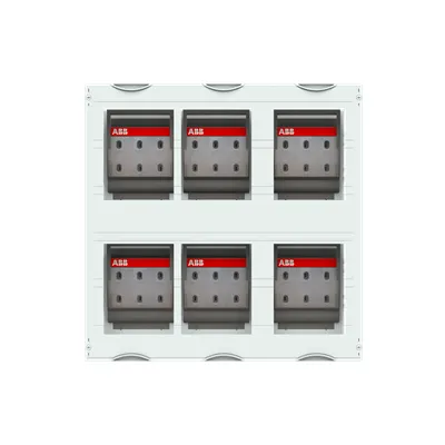 2CPX041310R9999 ABB: Interior fitting module, CombiLine, mounted in cabinet, for NH1-fuse switch disconnector, Grid unit 5 GU = 750 mm, panel width 3 = 750 mm, 180 Space units, equipped with 6 NH-fuse disconnector NH1, Equipment manufacturer: ABB, XLP, with busbar system 3-pole, rated current maximum 630 A, covers out of Plastic, 90 degree press and turn closure, RAL 7035, Design of the cover: with cut-out, usuable as of the cabinet depth of 225 mm