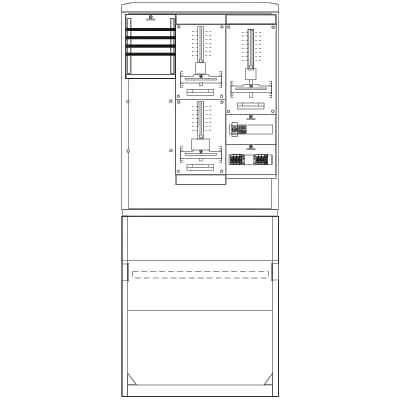 2CPX043773R9999 ABB: Meter board, series SZ, fully assembled cabinet, for the Outdoor, degree of protection IP44, rated current 63 A, other, in RAL 7035, enclosure out of Plastic, single-leaf door, with Swivel handle with half cylinder, door hinge right, rear wall out of Plastic, dimensions in mm (H x W x D): 1966 x 785 x 320, Metering module pre-wired, Number of meter spaces single tariff 2, Number of SG spaces 1