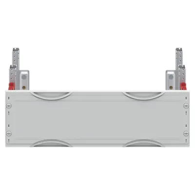 2CPX044147R9999 ABB: Interior fitting module, CombiLine, mounted in cabinet, for N/PE busbar and terminals, Grid unit 1 GU = 150 mm, panel width 2 = 500 mm, 24 Space units, , usuable width of 500 mm, unequipped for the installation of , for busbar system 1-pole, Busbar alignment: horizontal, for maximum 1 Cu busbars, (busbars must be ordered separately), rated current maximum 1000 A, covers out of Plastic, 90 degree press and turn closure, RAL 7035, Design of the cover: Closed, usuable as of the cabinet depth of 400 mm