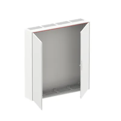 2CPX052033R9999 ABB: Wall-mounting cabinet, empty cabinet, for the internal use, with Door, class of protection II (double insulated), degree of protection IP44, Impact strength IK07, rated current 250 A, Powder-coated, in RAL 9016, enclosure out of sheet steel, double door, door out of sheet steel, door opening angle 120 degree, cable entry on top via membrane flange mounted, on side via flange opening pre-punched, dimensions in mm (H x W x D): 1100 x 1050 x 215, Grid unit 7 GU, panel width 4, Space units 336, pre-assembled for installation of metering-, modules, Combi-Sets, CombiLine-Module on EDF-mounting frame