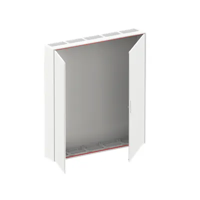 2CPX052109R9999 ABB: Wall-mounting cabinet, empty cabinet, for the internal use, with Door, class of protection II (double insulated), degree of protection IP54, Impact strength IK07, rated current 250 A, Powder-coated, in RAL 9016, enclosure out of sheet steel, double door, door out of sheet steel, door opening angle 120 degree, cable entry on top via membrane flange mounted, on side via flange opening pre-punched, dimensions in mm (H x W x D): 1400 x 1300 x 215, Grid unit 9 GU, panel width 5, Space units 540, pre-assembled for installation of metering-, modules, Combi-Sets, CombiLine-Module on EDF-mounting frame