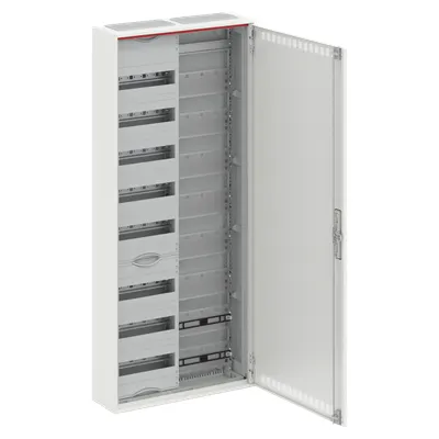 2CPX052215R9999 ABB: Compact distribution board, partly assembled cabinet, for the internal use, with Door, class of protection II (double insulated), in combination with earthing set (accessory) we can achieve protection class 1, degree of protection IP30, applicable standards: EN 61439-1, EN 61439-3, Impact strength IK07, Rated operational voltage 400V AC 50/60 Hz, rated current 125 A, Powder-coated, in RAL 9016, enclosure out of sheet steel, ventilated metal door, door out of sheet steel, in RAL 9016, with Standard closure, door opening angle 120 degree, door hinge right or left, cable entry on top via membrane flange mounted, on bottom via flange opening pre-punched, dimensions in mm (H x W x D): 1250 x 550 x 160, Grid unit 8 GU, panel width 2, Space units 96, Row distance in mm: 125, covers out of Plastic, 90 degree press and turn closure, RAL 7035, with N/PE Quick-terminal, cable fastening rail integrated, Assembled with distribution module + multimedia module, device support removable