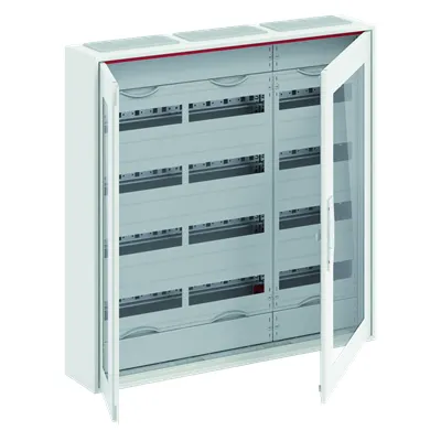 2CPX052258R9999 ABB: Compact distribution board, partly assembled cabinet, for the internal use, with Door, class of protection II (double insulated), in combination with earthing set (accessory) we can achieve protection class 1, degree of protection IP44, applicable standards: EN 61439-1, EN 61439-3, Impact strength IK07, Rated operational voltage 400V AC 50/60 Hz, rated current 125 A, Powder-coated, in RAL 9016, enclosure out of sheet steel, transparent door, door out of sheet steel, in RAL 9016, with Standard closure, door opening angle 120 degree, door hinge right and left, cable entry on top via membrane flange mounted, on bottom via flange opening pre-punched, dimensions in mm (H x W x D): 800 x 800 x 160, Grid unit 5 GU, panel width 3, Space units 144, Row distance in mm: 150, covers out of Plastic, 90 degree press and turn closure, RAL 7035, with N/PE Quick-terminal, cable fastening rail integrated, Assembled with distribution module, device support removable