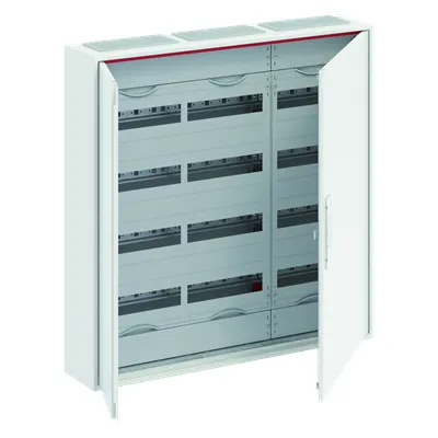 2CPX052286R9999 ABB: Compact distribution board, partly assembled cabinet, for the internal use, with Door, class of protection II (double insulated), in combination with earthing set (accessory) we can achieve protection class 1, degree of protection IP44, applicable standards: EN 61439-1, EN 61439-3, Impact strength IK07, Rated operational voltage 400V AC 50/60 Hz, rated current 125 A, Powder-coated, in RAL 9016, enclosure out of sheet steel, double door, door out of sheet steel, in RAL 9016, with Standard closure, door opening angle 130 degree, door hinge right and left, cable entry on top via pre-punched, on bottom via pre-punched, dimensions in mm (H x W x D): 800 x 800 x 160, Grid unit 5 GU, panel width 3, Space units 144, Row distance in mm: 150, covers out of Plastic, 90 degree press and turn closure, RAL 7035, with N/PE screw terminal, cable fastening rail integrated, Assembled with distribution module, device support removable