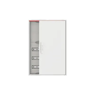 2CPX052290R9999 ABB: Compact distribution board, partly assembled cabinet, for the internal use, with Door, class of protection II (double insulated), in combination with earthing set (accessory) we can achieve protection class 1, degree of protection IP44, applicable standards: EN 61439-1, EN 61439-3, Impact strength IK07, Rated operational voltage 400V AC 50/60 Hz, rated current 125 A, Powder-coated, in RAL 9016, enclosure out of sheet steel, single-leaf door, door out of sheet steel, in RAL 9016, with Standard closure, door opening angle 120 degree, door hinge right and left, cable entry on top via membrane flange mounted, on bottom via flange opening pre-punched, dimensions in mm (H x W x D): 800 x 550 x 160, Grid unit 5 GU, panel width 2, Space units 72, Row distance in mm: 125, covers out of Plastic, 90 degree press and turn closure, RAL 7035, without N/PE without terminal, cable fastening rail integrated, Assembled with distribution module + terminals, device support removable