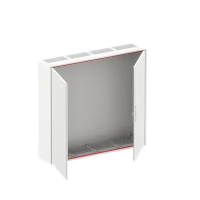 2CPX052510R9999 ABB: Wall-mounting cabinet, empty cabinet, for the internal use, with Door, class of protection II (double insulated), degree of protection IP54, Impact strength IK07, rated current 250 A, Powder-coated, in RAL 9016, enclosure out of sheet steel, double door, door out of sheet steel, door opening angle 120 degree, cable entry on top via membrane flange mounted, on side via flange opening pre-punched, dimensions in mm (H x W x D): 950 x 1050 x 215, Grid unit 6 GU, panel width 4, Space units 288, pre-assembled for installation of metering-, modules, Combi-Sets, CombiLine-Module on EDF-mounting frame