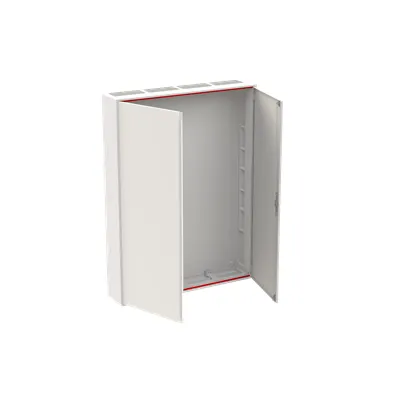 2CPX052520R9999 ABB: Wall-mounting cabinet, empty cabinet, for the internal use, with Door, class of protection II (double insulated), degree of protection IP54, Impact strength IK07, rated current 250 A, Powder-coated, in RAL 9016, enclosure out of sheet steel, double door, door out of sheet steel, door opening angle 120 degree, cable entry on top via membrane flange mounted, on side via flange opening pre-punched, dimensions in mm (H x W x D): 1400 x 1050 x 215, Grid unit 9 GU, panel width 4, Space units 432, pre-assembled for installation of metering-, modules, Combi-Sets, CombiLine-Module on EDF-mounting frame