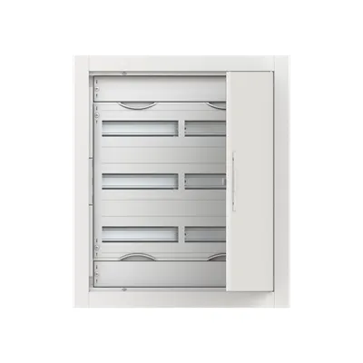 2CPX052600R9999 ABB: Compact distribution board, series ComfortLine, partly assembled cabinet, for the internal use, with closed doorframe and door, class of protection II (double insulated), in combination with earthing set (accessory) we can achieve protection class 1, degree of protection IP30, applicable standards: EN 61439-1, EN 61439-3, Impact strength IK09, Rated operational voltage 400V AC 50/60 Hz, rated current 125 A, Powder-coated, in RAL 9016, enclosure out of sheet steel, metal door , door out of sheet steel, in RAL 9016, with Standard closure, door opening angle 120 degree, door hinge right or left, cable entry on top via cable entry slide part is pre-punched, on bottom via cable entry slide part is pre-punched, dimensions in mm (H x W x D): 714 x 615 x 125, Shutter frame dimensions in mm (H x W x D): 714 x 615 x 15, 15 mm, possible plaster compensation up to 25 mm, Grid unit 4 GU, panel width 2, Space units 72, Row distance in mm: 150, covers out of Plastic, 90 degree press and turn closure, RAL 7035, with N/PE Quick-terminal, cable fastening rail integrated, expanded with distributor fields, device support removable