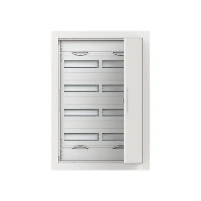 2CPX052601R9999 ABB: Compact distribution board, series ComfortLine, partly assembled cabinet, for the internal use, with closed doorframe and door, class of protection II (double insulated), in combination with earthing set (accessory) we can achieve protection class 1, degree of protection IP30, applicable standards: EN 61439-1, EN 61439-3, Impact strength IK09, Rated operational voltage 400V AC 50/60 Hz, rated current 125 A, Powder-coated, in RAL 9016, enclosure out of sheet steel, metal door , door out of sheet steel, in RAL 9016, with Standard closure, door opening angle 120 degree, door hinge right or left, cable entry on top via cable entry slide part is pre-punched, on bottom via cable entry slide part is pre-punched, dimensions in mm (H x W x D): 864 x 615 x 125, Shutter frame dimensions in mm (H x W x D): 864 x 615 x 15, 15 mm, possible plaster compensation up to 25 mm, Grid unit 5 GU, panel width 2, Space units 96, Row distance in mm: 150, covers out of Plastic, 90 degree press and turn closure, RAL 7035, with N/PE Quick-terminal, cable fastening rail integrated, expanded with distributor fields, device support removable