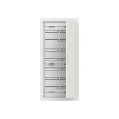 2CPX052604R9999 ABB: Compact distribution board, series ComfortLine, partly assembled cabinet, for the internal use, with closed doorframe and door, class of protection II (double insulated), in combination with earthing set (accessory) we can achieve protection class 1, degree of protection IP30, applicable standards: EN 61439-1, EN 61439-3, Impact strength IK09, Rated operational voltage 400V AC 50/60 Hz, rated current 125 A, Powder-coated, in RAL 9016, enclosure out of sheet steel, metal door , door out of sheet steel, in RAL 9016, with Standard closure, door opening angle 120 degree, door hinge right or left, cable entry on top via cable entry slide part is pre-punched, on bottom via cable entry slide part is pre-punched, dimensions in mm (H x W x D): 1314 x 615 x 125, Shutter frame dimensions in mm (H x W x D): 1314 x 615 x 15, 15 mm, possible plaster compensation up to 25 mm, Grid unit 8 GU, panel width 2, Space units 168, Row distance in mm: 150, covers out of Plastic, 90 degree press and turn closure, RAL 7035, with N/PE Quick-terminal, cable fastening rail integrated, expanded with distributor fields, device support removable