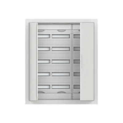 2CPX052605R9999 ABB: Compact distribution board, series ComfortLine, partly assembled cabinet, for the internal use, with closed doorframe and door, class of protection II (double insulated), in combination with earthing set (accessory) we can achieve protection class 1, degree of protection IP30, applicable standards: EN 61439-1, EN 61439-3, Impact strength IK09, Rated operational voltage 400V AC 50/60 Hz, rated current 125 A, Powder-coated, in RAL 9016, enclosure out of sheet steel, double door, door out of sheet steel, in RAL 9016, with Standard closure, door opening angle 120 degree, door hinge right and left, cable entry on top via cable entry slide part is pre-punched, on bottom via cable entry slide part is pre-punched, dimensions in mm (H x W x D): 1014 x 865 x 125, Shutter frame dimensions in mm (H x W x D): 1014 x 865 x 15, 15 mm, possible plaster compensation up to 25 mm, Grid unit 6 GU, panel width 3, Space units 180, Row distance in mm: 150, covers out of Plastic, 90 degree press and turn closure, RAL 7035, with N/PE Quick-terminal, cable fastening rail integrated, expanded with distributor fields, device support removable