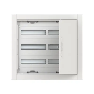 2CPX052612R9999 ABB: Compact distribution board, series ComfortLine, partly assembled cabinet, for the internal use, with closed doorframe and door, class of protection II (double insulated), in combination with earthing set (accessory) we can achieve protection class 1, degree of protection IP30, applicable standards: EN 61439-1, EN 61439-3, Impact strength IK09, Rated operational voltage 400V AC 50/60 Hz, rated current 125 A, Powder-coated, in RAL 9016, enclosure out of sheet steel, metal door , door out of sheet steel, in RAL 9016, with Standard closure, door opening angle 120 degree, door hinge right or left, cable entry on top via cable entry slide part is pre-punched, on bottom via cable entry slide part is pre-punched, dimensions in mm (H x W x D): 564 x 615 x 125, Shutter frame dimensions in mm (H x W x D): 564 x 615 x 15, 15 mm, possible plaster compensation up to 25 mm, Grid unit 3 GU, panel width 2, Space units 72, Row distance in mm: 125, covers out of Plastic, 90 degree press and turn closure, RAL 7035, with N/PE Quick-terminal, cable fastening rail integrated, expanded with distributor fields, device support removable