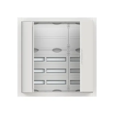 2CPX052626R9999 ABB: Compact distribution board, series ComfortLine, partly assembled cabinet, for the internal use, with closed doorframe and door, class of protection II (double insulated), in combination with earthing set (accessory) we can achieve protection class 1, degree of protection IP30, applicable standards: EN 61439-1, EN 61439-3, Impact strength IK09, Rated operational voltage 400V AC 50/60 Hz, rated current 125 A, Powder-coated, in RAL 9016, enclosure out of sheet steel, double door, door out of sheet steel, in RAL 9016, with Standard closure, door opening angle 120 degree, door hinge right and left, cable entry on top via cable entry slide part is pre-punched, on bottom via cable entry slide part is pre-punched, dimensions in mm (H x W x D): 864 x 865 x 125, Shutter frame dimensions in mm (H x W x D): 864 x 865 x 15, 15 mm, possible plaster compensation up to 25 mm, Grid unit 5 GU, panel width 3, Space units 108, Row distance in mm: 125, covers out of Plastic, 90 degree press and turn closure, RAL 7035, without N/PE without terminal, cable fastening rail integrated, Assembled with distribution module + terminals, device support removable