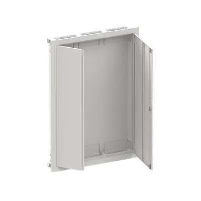 2CPX052644R9999 ABB: Compact distribution board, series ComfortLine, empty cabinet, for the internal use, with closed doorframe and door, class of protection II (double insulated), in combination with earthing set (accessory) we can achieve protection class 1, degree of protection IP30, applicable standards: EN 61439-1, EN 61439-3, Impact strength IK09, Rated operational voltage 400V AC 50/60 Hz, rated current 125 A, Powder-coated, in RAL 9016, enclosure out of sheet steel, double door, door out of sheet steel, in RAL 9016, with Standard closure, door opening angle 120 degree, door hinge right and left, cable entry on top via cable entry slide part is pre-punched, on bottom via cable entry slide part is pre-punched, dimensions in mm (H x W x D): 1164 x 865 x 125, Shutter frame dimensions in mm (H x W x D): 1164 x 865 x 15, 15 mm, possible plaster compensation up to 25 mm, Grid unit 7 GU, panel width 3, Space units 252, without N/PE Quick-terminal, cable fastening rail integrated, pre-assembled for installation of modules and CombiLine Modules