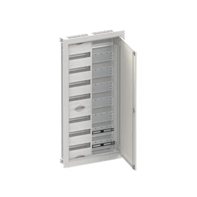 2CPX052674R9999 ABB: Compact distribution board, series ComfortLine, partly assembled cabinet, for the internal use, with closed doorframe and door, class of protection II (double insulated), in combination with earthing set (accessory) we can achieve protection class 1, degree of protection IP30, applicable standards: EN 61439-1, EN 61439-3, Impact strength IK09, Rated operational voltage 400V AC 50/60 Hz, rated current 125 A, Powder-coated, in RAL 9016, enclosure out of sheet steel, ventilated metal door, door out of sheet steel, in RAL 9016, with Standard closure, door opening angle 120 degree, door hinge right or left, cable entry on top via cable entry slide part is pre-punched, on bottom via cable entry slide part is pre-punched, dimensions in mm (H x W x D): 1164 x 615 x 125, Shutter frame dimensions in mm (H x W x D): 1164 x 615 x 15, 15 mm, possible plaster compensation up to 25 mm, Grid unit 7 GU, panel width 2, Space units 84, Row distance in mm: 125, covers out of Plastic, 90 degree press and turn closure, RAL 7035, with N/PE Quick-terminal, cable fastening rail integrated, Assembled with distribution module + multimedia module, device support removable
