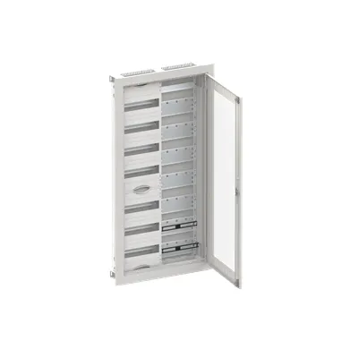2CPX052681R9999 ABB: Compact distribution board, series ComfortLine, partly assembled cabinet, for the internal use, with closed doorframe and door, class of protection II (double insulated), in combination with earthing set (accessory) we can achieve protection class 1, degree of protection IP30, applicable standards: EN 61439-1, EN 61439-3, Impact strength IK07, Rated operational voltage 400V AC 50/60 Hz, rated current 125 A, Powder-coated, in RAL 9016, enclosure out of sheet steel, ventilated metal door wifi, door out of sheet steel, in RAL 9016, with Standard closure, door opening angle 120 degree, door hinge right or left, cable entry on top via cable entry slide part is pre-punched, on bottom via cable entry slide part is pre-punched, dimensions in mm (H x W x D): 1164 x 615 x 125, Shutter frame dimensions in mm (H x W x D): 1164 x 615 x 15, 15 mm, possible plaster compensation up to 25 mm, Grid unit 7 GU, panel width 2, Space units 84, Row distance in mm: 125, covers out of Plastic, 90 degree press and turn closure, RAL 7035, with N/PE Quick-terminal, cable fastening rail integrated, Assembled with distribution module + multimedia module, device support removable