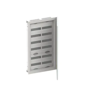 2CPX052689R9999 ABB: Compact distribution board, series ComfortLine, partly assembled cabinet, for the internal use, With picture frame door, class of protection II (double insulated), in combination with earthing set (accessory) we can achieve protection class 1, degree of protection IP30, applicable standards: EN 61439-1, EN 61439-3, Rated operational voltage 400V AC 50/60 Hz, rated current 125 A, other, in RAL ALUMINIUM, enclosure out of sheet steel, door out of aluminium anodized, in RAL SONSTIGE, door opening angle 120 degree, door hinge right or left, cable entry on top via cable entry slide part is pre-punched, on bottom via cable entry slide part is pre-punched, dimensions in mm (H x W x D): 1014 x 615 x 125, Shutter frame dimensions in mm (H x W x D): 1014 x 615 x 25, 25 mm, possible plaster compensation up to 25 mm, Grid unit 6 GU, panel width 2, Space units 144, Row distance in mm: 125, covers out of Plastic, 90 degree press and turn closure, RAL 7035, with N/PE Quick-terminal, cable fastening rail integrated, expanded with distributor fields, device support removable