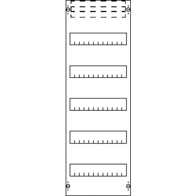 2CPX054000R9999 ABB: Distribution panel, suitable for series: ComfortLine, empty board, for DIN rail mounting devices, dimensions in mm (H x W x D): 750 x 250 x 160, Grid unit 5 GU, Overall height 1, panel width 1, Space units 60, Row distance in mm: 125, covers out of Plastic, 90 degree press and turn closure, RAL 7035, with N/PE Quick-terminal