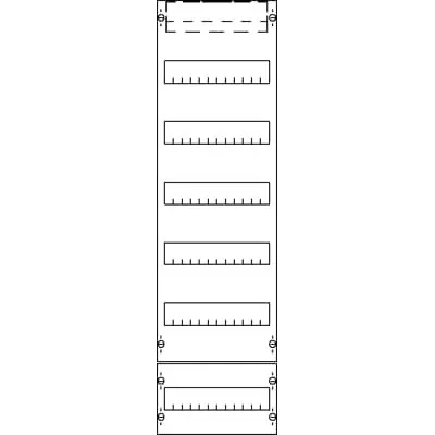 2CPX054001R9999 ABB: Distribution panel, suitable for series: ComfortLine, empty board, for DIN rail mounting devices, dimensions in mm (H x W x D): 900 x 250 x 160, Grid unit 6 GU, Overall height 2, panel width 1, Space units 72, Row distance in mm: 125, covers out of Plastic, 90 degree press and turn closure, RAL 7035, with N/PE Quick-terminal