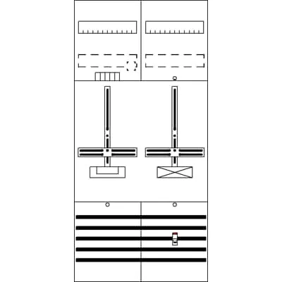 2CPX054081R9999 ABB: Meter panel, series ComfortLine, suitable for series: ComfortLine A and ComfortLine AD, fully assembled module, with Metering cross, degree of protection IP2XC, applicable standards: VDE AR-N 4100:2019-04, rated current 63 A, in RAL 7035, dimensions in mm (H x W x D): 1050 x 500 x 160, Metering module pre-wired, Earthing system TN-S, 5-pole, Direct connection, net side compartment, meter space: with busbar, pre-assembled for main switch SH, with-out, net side compartment, SG space: with Miniature circuit breaker 1-pole B10/25kA according DIN VDE 0660-101 sealable, system side compartment, meter space: with Main branch terminal, Number of meter spaces single tariff 1, Number of SG spaces 1, Grid unit 7 GU, Overall height 3, panel width 2, Space units 168, covers out of Plastic, Quick sealable connection, RAL 7035