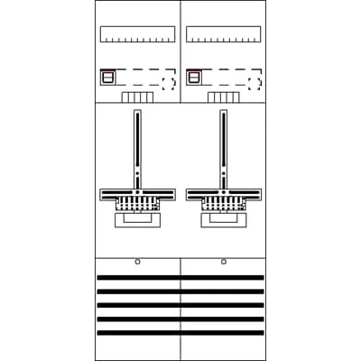 2CPX054139R9999 ABB: Meter panel, series ComfortLine, suitable for series: ComfortLine A and ComfortLine AD, fully assembled module, with Metering cross, degree of protection IP2XC, applicable standards: VDE AR-N 4100:2019-04, rated current 63 A, in RAL 7035, dimensions in mm (H x W x D): 1050 x 500 x 160, Metering module pre-wired, Earthing system TN-S, 5-pole, net side compartment, meter space: with busbar, pre-assembled for main switch SH, with-out, system side compartment, meter space: Switch 63 A/3-pole lockable and main branch terminal, Number of meter spaces single tariff 2, Grid unit 7 GU, Overall height 3, panel width 2, Space units 168, covers out of Plastic, Quick sealable connection, RAL 7035
