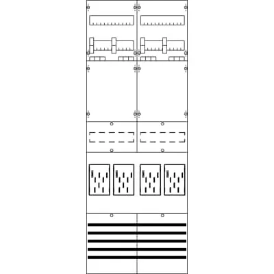 2CPX054174R9999 ABB: Meter panel, series ComfortLine, suitable for series: ComfortLine A and ComfortLine AD, fully assembled module, with BKE-I, degree of protection IP2XC, rated current 63 A, in RAL 7035, dimensions in mm (H x W x D): 1350 x 500 x 160, Metering module pre-wired, Earthing system TN-S, 5-pole, Stecktechnik, net side compartment, meter space: with busbar, pre-assembled for main switch SH, with-out, system side compartment, meter space: with Main branch terminal, compartment for additional devices of eHZ 150 mm, Number of meter spaces single tariff 4, Grid unit 9 GU, Overall height 5, panel width 2, Space units 216, covers out of Plastic, Quick sealable connection, RAL 7035