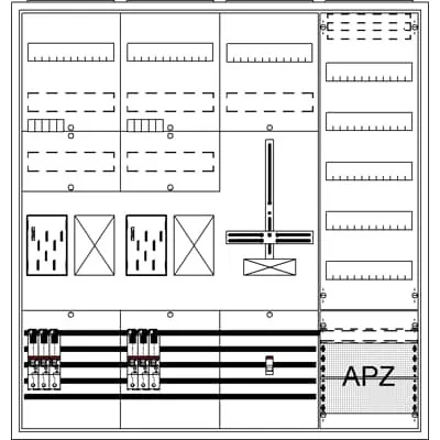 2CPX054218R9999 ABB: Meter board, series ComfortLine A, fully assembled cabinet, with BKE-I, Expansion option: Lateral, for the internal use, with Door, class of protection II (double insulated), degree of protection IP31, applicable standards: DIN VDE 0603-2-1, VDE AR-N 4100:2019-04, Impact strength IK07, Rated operational voltage 400V AC 50/60 Hz, rated current 63 A, Powder-coated, in RAL 9016, enclosure out of sheet steel, double door, door out of sheet steel, with Standard closure, door opening angle 120 degree, door hinge right and left, rear wall out of sheet steel / plastic, cable entry on top via membrane flange mounted, on bottom via 2x cable entry flange included, on side via flange opening pre-punched, rear wall cable entry part is pre-punched, dimensions in mm (H x W x D): 1100 x 1050 x 215, Metering module pre-wired, Earthing system TN-S, 5-pole, Stecktechnik, net side compartment, meter space: with busbar, with 2x selective main circuit breaker E35A 3polig, net side compartment, SG space: with Miniature circuit breaker 1-pole B10/25kA according DIN VDE 0660-101 sealable, incoming terminals up to 25 mm², system side compartment, meter space: with Main branch terminal, compartment for additional devices of eHZ 150 mm, Number of meter spaces single tariff 2, Number of reserve spaces 2, Number of SG spaces 1, Number of distributor rows 5, Grid unit 7 GU, Overall height 3, panel width 4, Space units 336, covers out of Plastic, RAL 7035