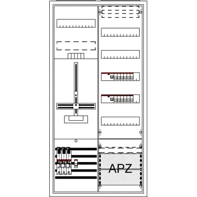 2CPX054250R9999 ABB: Meter board, series ComfortLine A, fully assembled cabinet, with Metering cross, Expansion option: Lateral, for the internal use, with Door, class of protection II (double insulated), degree of protection IP31, applicable standards: DIN VDE 0603-2-1, VDE AR-N 4100:2019-04, Impact strength IK07, Rated operational voltage 400V AC 50/60 Hz, rated current 63 A, Powder-coated, in RAL 9016, enclosure out of sheet steel, single-leaf door, door out of sheet steel, with Standard closure, door opening angle 120 degree, door hinge right or left, rear wall out of sheet steel / plastic, cable entry on top via membrane flange mounted, on bottom via 2x cable entry flange included, on side via flange opening pre-punched, rear wall cable entry part is pre-punched, dimensions in mm (H x W x D): 1100 x 550 x 215, Metering module pre-wired, Earthing system TN-S, 5-pole, Direct connection, net side compartment, meter space: with busbar, with 1x selective main circuit breaker E63A 3polig, incoming terminals up to 25 mm², system side compartment, meter space: with Main branch terminal, Number of meter spaces single tariff 1, Number of distributor rows 5, Grid unit 7 GU, Overall height 3, panel width 2, Space units 168, covers out of Plastic, RAL 7035