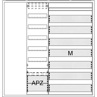 2CPX054298R9999 ABB: Meter expansion cabinet, series ComfortLine A, without meter panel, free panel width: 1, with distribution panel FV17A2, with media panel FM27, universally usable throughout Germany, meter panel selection is made by the customer according to regional conditions, mounting type: wall-mounted, partially recessed, flush-mounted (with trim frame), for indoor use in residential, functional and industrial buildings, cable entry on top via membrane flange mounted, on bottom via 1x cable entry flange enclosed, on side via flange opening embossed, rear wall via cable entry embossed, dimensions in mm (H x W x D): 1100 x 1050 x 215, housing made of sheet steel, double door made of sheet steel, with standard lock, door opening angle 120 degrees, rear wall made of sheet steel / plastic, protection class IP44 (IP31 according to DIN VDE 0603-1), IK code 07, applicable standards: DIN VDE 0603-1, DIN 43870-1, color: white RAL 9016, powder coated, included in delivery: 5x busbar connection terminal (ZK79).