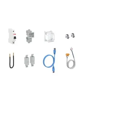 2CPX054319R9999 ABB: Equipment set for power supply and communication (iMSys). Cable length suitable for use in the 7GU expansion cabinet. Included in delivery: 1x overcurrent protection device MCB B10A 25kA 1-pole, 1x device carrier (ZB3) for busbar mounting, 1x sealing cap (ZPH20) for overcurrent protection device, 1x input wiring for overcurrent protection device, 2x busbar connection terminal 16mm² for N conductor and input wiring for overcurrent protection device, 1x power supply cable 2-pole (L+N) for RfZ, one-sided with female connector, 1x patch cable 1500mm (ZLPBL150), 2x RJ45 double socket (ZED45U)