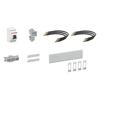 2CPX054338R9999 ABB: Equipment set for converting a meter place for use as a surplus feed-in (continuous current 32A). The conversion is done by means of 'line extension (BKE-I) or line replacement (three-point fixing)'. Cable lengths suitable for standard BKE-I / three-point fixing meter place 7GU and three-point fixing meter place 9GU meter place above. The disconnecting device (circuit breaker for self-generation) can be positioned in the NAR or AAR.Included in delivery:1x E463/3KB circuit breaker, 3-pole, 63A,1x main line terminal 3-pole, 25/16mm² (ZK416),3x meter input cable 10mm², black (L1-L3),3x connection cable 10mm², black (L1-L3) from circuit breaker to main line terminal,1x device carrier (ZB3) for busbar mounting,2x busbar insulation profile 80mm,1x slot cover lockable (ZA235), RAL 7035