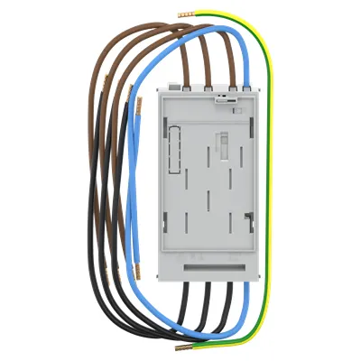 2CPX054344R9999 ABB: Fastening and contacting unit (BKE-I) for universal use, rated current up to 63A, continuous current up to 32A. Included in delivery:1x fastening and contacting unit BKE-I 4-pole, 10mm², with seamless N, 1000 mm input /output,1x PE cable green/yellow 10mm², 2200 mm