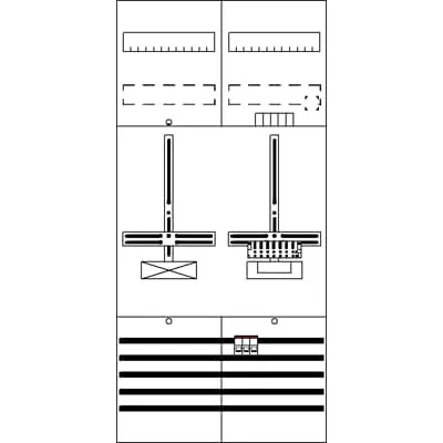 2CPX054436R9999 ABB: Meter panel, series ComfortLine, suitable for series: ComfortLine ADLUX, fully assembled module, with Metering cross, degree of protection IP2XC, applicable standards: VDE AR-N 4100:2019-04, rated current 40 A, in RAL 7035, dimensions in mm (H x W x D): 1050 x 500 x 160, Metering module pre-wired, Earthing system TN-S, 5-pole, Quick terminal for metering, net side compartment, meter space: with busbar, with 1x MCB 40A 3pole, with-out, system side compartment, meter space: with Main branch terminal, Number of meter spaces single tariff 1, Number of reserve spaces 1, Grid unit 7 GU, Overall height 3, panel width 2, Space units 168, covers out of Plastic, Quick sealable connection, RAL 7035