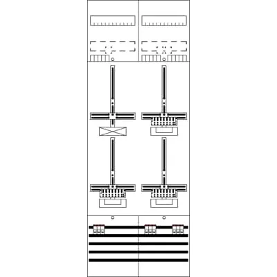 2CPX054438R9999 ABB: Meter panel, series ComfortLine, suitable for series: ComfortLine ADLUX, fully assembled module, with Metering cross, degree of protection IP2XC, rated current 40 A, in RAL 7035, dimensions in mm (H x W x D): 1350 x 500 x 160, Metering module pre-wired, Earthing system TN-S, 5-pole, Quick terminal for metering, net side compartment, meter space: with busbar, with 1x MCB 40A 3pole, with-out, system side compartment, meter space: with Main branch terminal, Number of meter spaces single tariff 3, Number of reserve spaces 1, Grid unit 9 GU, Overall height 5, panel width 2, Space units 216, covers out of Plastic, Quick sealable connection, RAL 7035