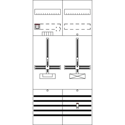 2CPX054458R9999 ABB: Meter panel, series ComfortLine, suitable for series: ComfortLine A and ComfortLine AD, fully assembled module, with Metering cross, degree of protection IP2XC, applicable standards: DIN VDE 0603-2-1, VDE AR-N 4100:2019-04, Rated operational voltage 400V AC Hz, rated current 63 A, in RAL 7035, dimensions in mm (H x W x D): 1050 x 500 x 160, Metering module pre-wired, Earthing system TN-S, 5-pole, Direct connection, net side compartment, meter space: with busbar, pre-assembled for main switch SH, with-out, system side compartment, meter space: Switch 63 A/3-pole lockable and main branch terminal, Number of meter spaces single tariff 1, Number of SG spaces 1, Grid unit 7 GU, Overall height 3, panel width 2, Space units 168, covers out of Plastic, Quick sealable connection, RAL 7035